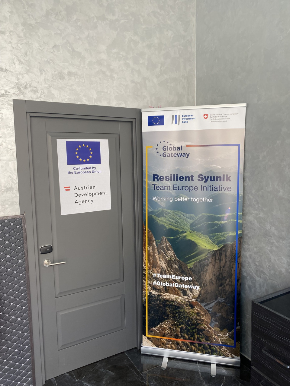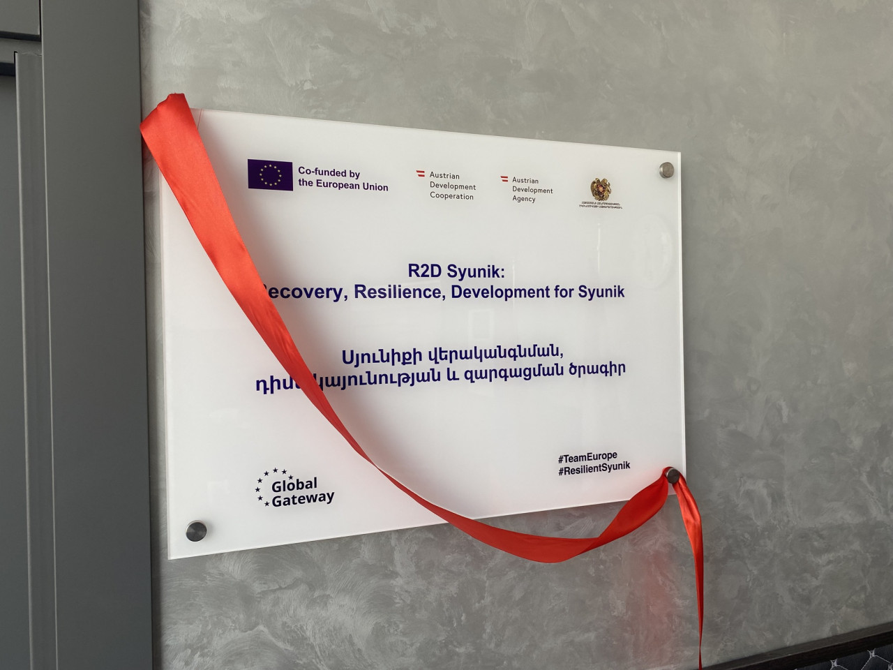 During the launch event, Andrea Wiktorin, Ambassador, Head of the EU Delegation to Armenia, and , Thomas Mühlmann, Ambassador of Austria to Armenia unveiled the Kapan project office of the Recovery, Resilience and Development for Syunik (R2D Syunik) program. This initiative, co-funded by the EU and the Austrian Development Cooperation, aims to facilitate the recovery and resilience of Micro, Small and Medium-sized Enterprises (MSMEs) while also rehabilitating sustainable small-scale community infrastructures in Syunik.