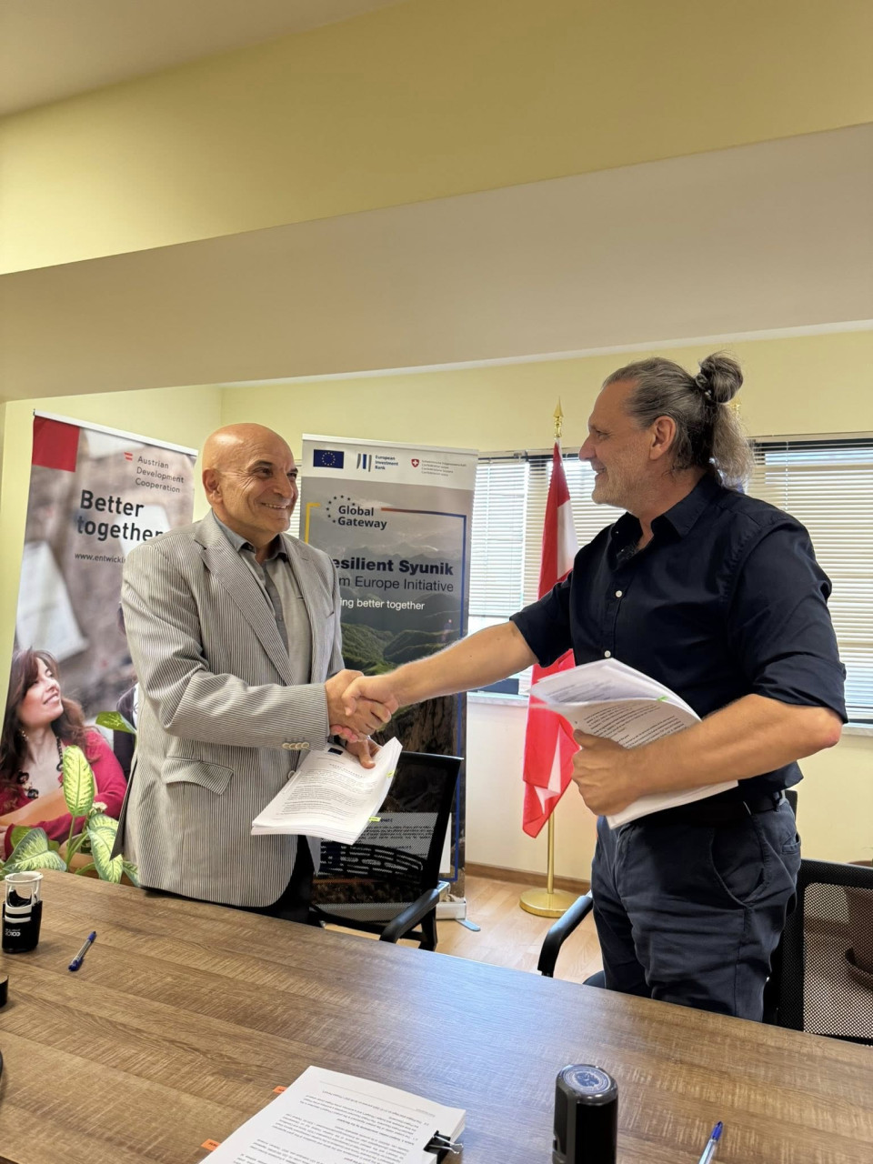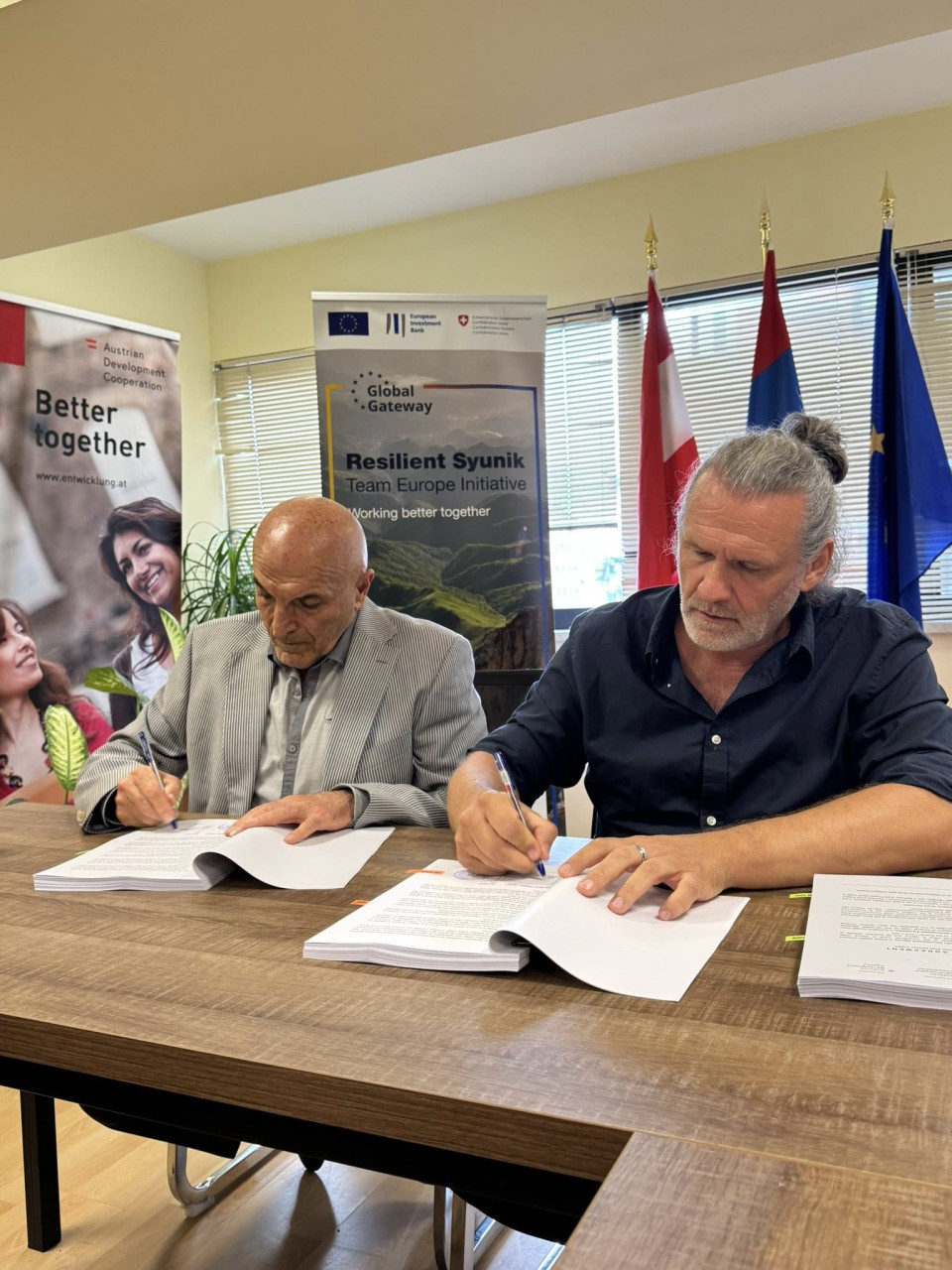 “The Resilient Syunik Team Europe initiative is the joint undertaking of the European Union, the European Investment Bank, the European Bank for Reconstruction and Development, EU Member states - Austria, Czechia, Estonia, Finland, France, Germany, Lithuania, the Netherlands, Poland, Sweden, and Switzerland also joining as an external partner. The initiative aims to contribute to the sustainable socioeconomic development of the Syunik region’’.