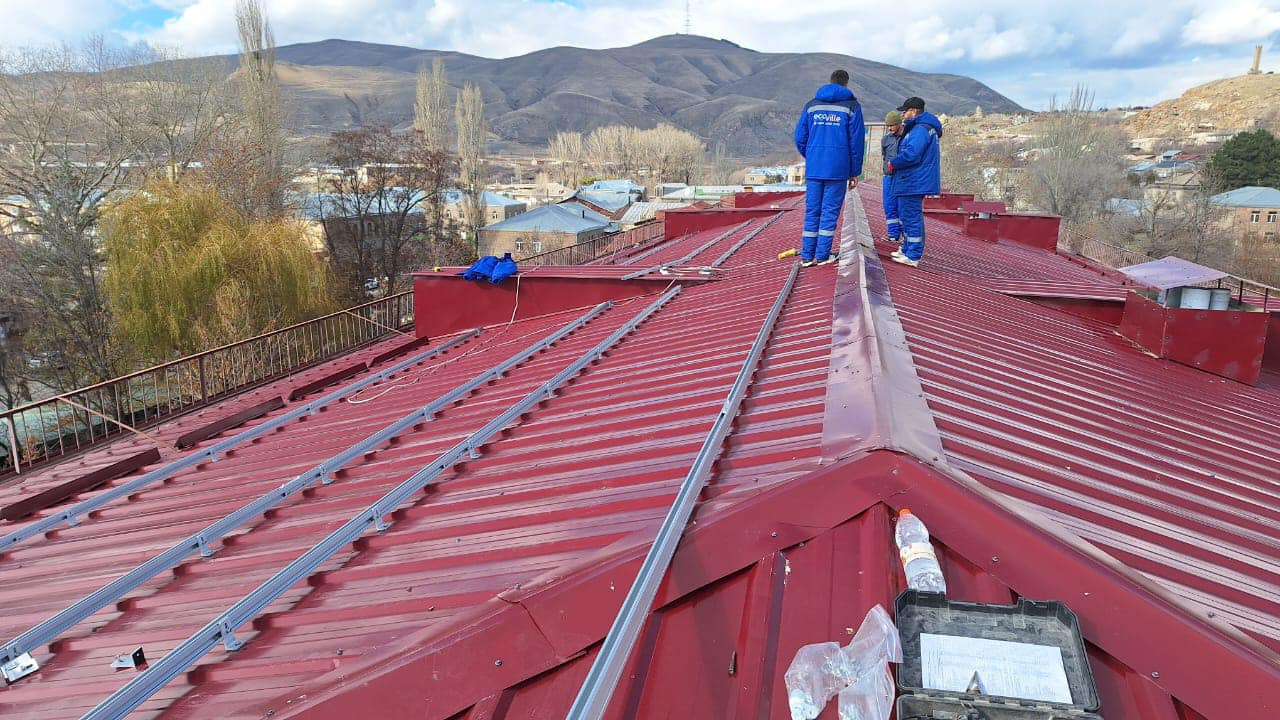 The installation of two 45-kilowatt solar photovoltaic (PV) systems on recently renovated roofs in Sisian and Brnakot aims to: